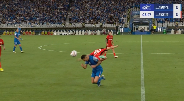08月09日訊 海港vs申花比賽中,吾米提江抬腳過(guò)高踢到路易斯,吃到一張黃牌。