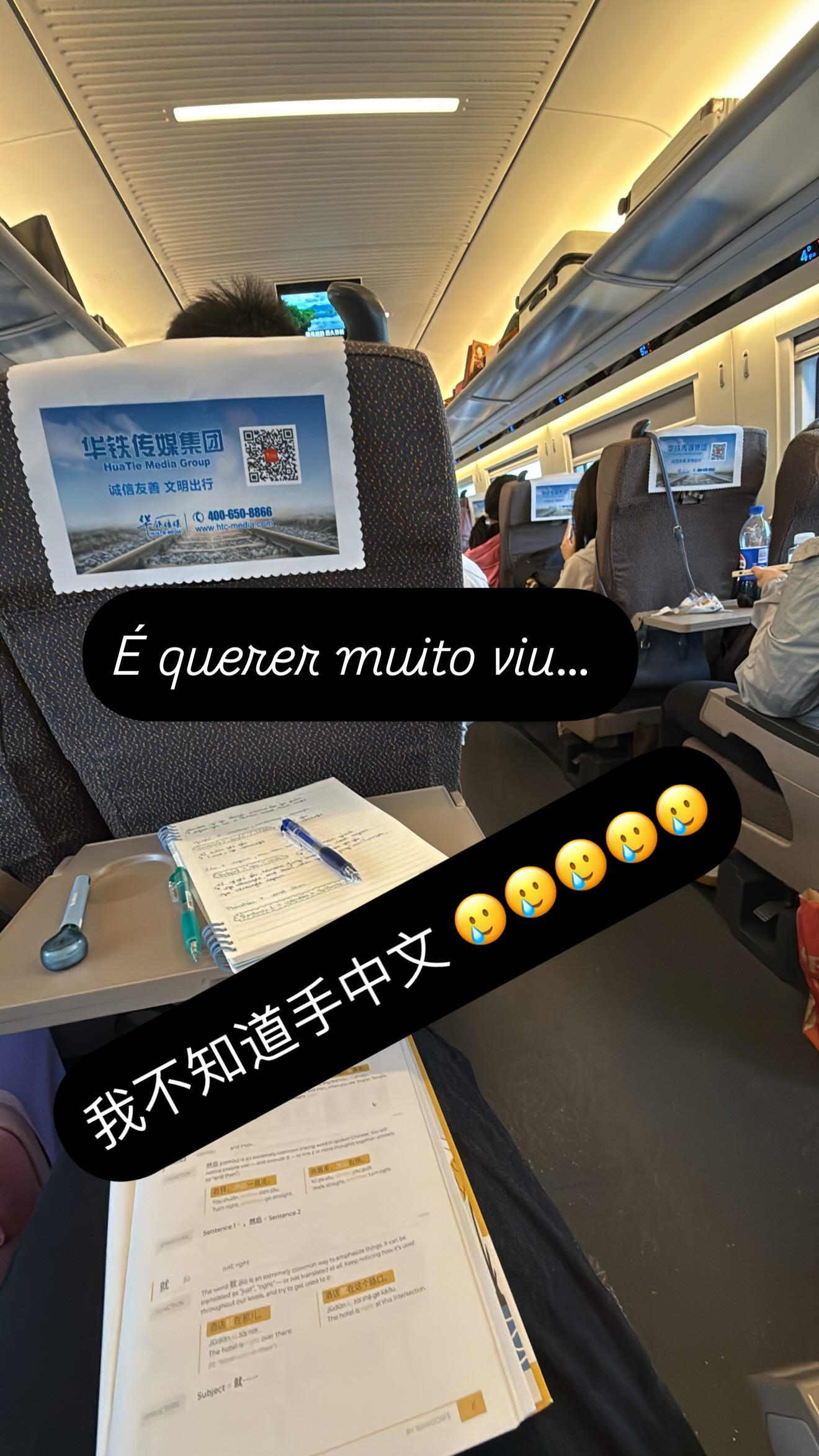 塞爾吉尼奧的妻子社媒曬出在高鐵上學(xué)中文的照片,并用中葡雙語(yǔ)配文: