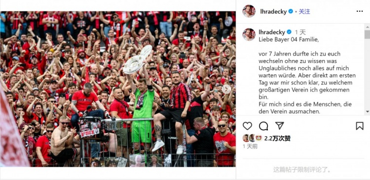 赫拉德茨基寫道:“親愛的勒沃庫森大家庭