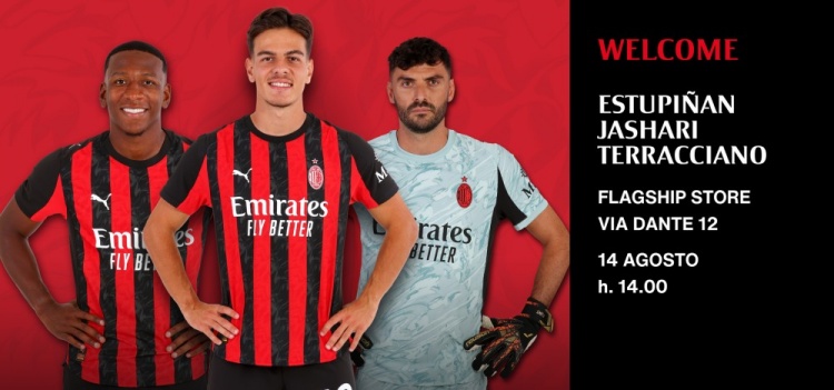 “埃斯圖皮尼安、亞沙里、P-泰拉恰諾將親臨這家坐落于米蘭心臟地帶、早已成為球迷聚集地的旗艦店。對于米蘭球迷來說,這是一次難得的機會:快來近距離見到他們,送上你的擁抱,向他們傳達你對新賽季開始的熱情與支持。我們期待在8月14日周四14點,與你相聚在但丁大街旗艦店!”