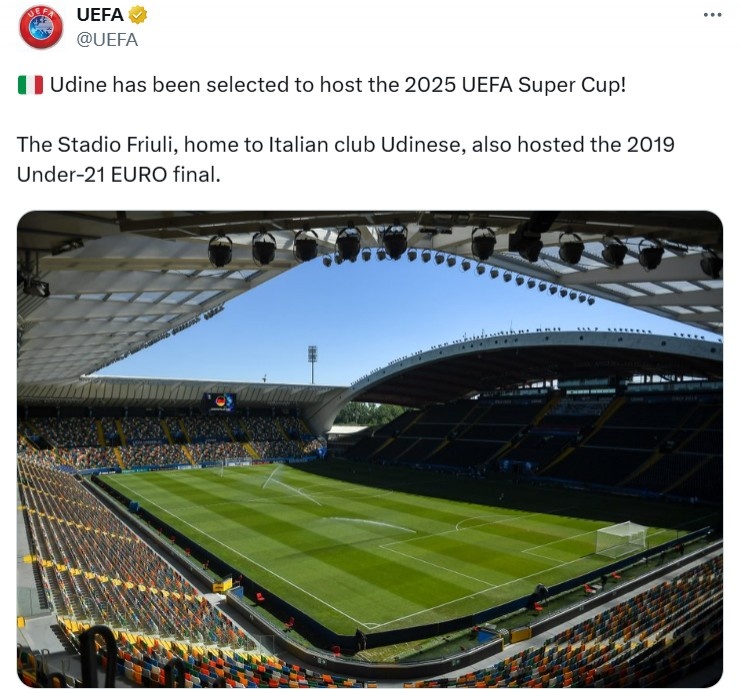 8月13日訊 巴黎圣日耳曼將在今晚的歐洲超級(jí)杯對(duì)陣熱刺,比賽在烏迪內(nèi)斯Bluenergy體育場(chǎng)舉行,The Athletic也對(duì)這座球場(chǎng)進(jìn)行了介紹。