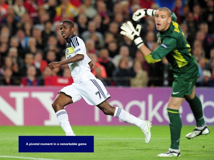 11-12賽季歐冠半決賽切爾西對(duì)陣巴薩,首回合藍(lán)軍主場(chǎng)1-0取勝。次回合雙方在諾坎普展開(kāi)決戰(zhàn),上半場(chǎng)布斯克茨和伊涅斯塔各入一球,巴薩2-0領(lǐng)先,總比分2-1反超。而且藍(lán)軍隊(duì)長(zhǎng)特里染紅下場(chǎng)。