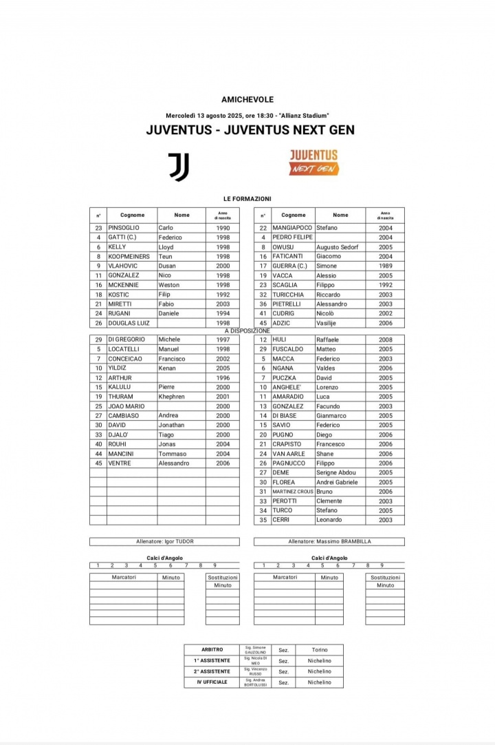 8月13日訊 北京時間14日0點(diǎn)30分,友誼賽尤文vs尤文新一代,此役雙方首發(fā)已經(jīng)公布。