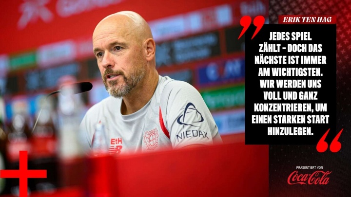 08月14日訊 勒沃庫(kù)森即將在德國(guó)杯首輪迎來(lái)賽季首秀,球隊(duì)主帥滕哈赫出席了本場(chǎng)比賽的賽前發(fā)布會(huì)。