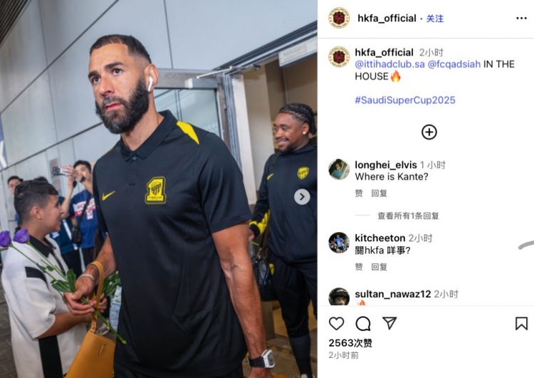 中國香港足協(xié)ins為照片配文寫道:“吉達聯(lián)合和庫迪西亞已就位!#沙特超級杯2025”
