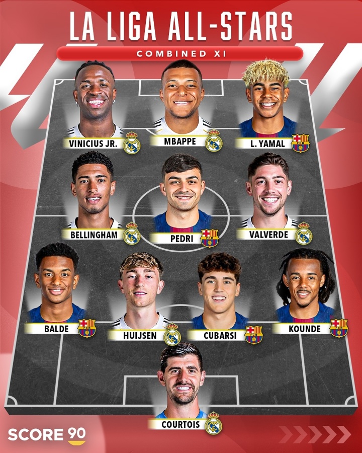 08月16日訊 外媒SCORE90列出西甲、英超全明星陣容,并拋出提問:西甲聯(lián)賽對陣英超全明星,誰將獲勝?