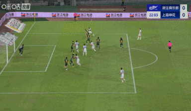 08月16日訊 中超第21輪,浙江vs上海申花,路易斯禁區(qū)內(nèi)倒鉤打門,皮球打在橫梁上彈出。