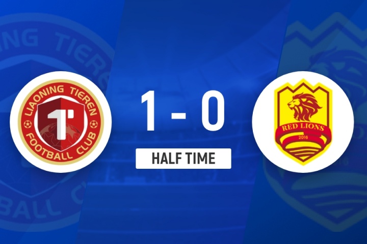 上半場(chǎng)比賽結(jié)束,遼寧鐵人1-0青島紅獅。