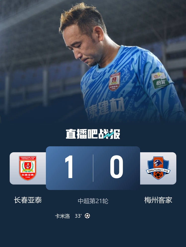 補(bǔ)時(shí)19分鐘之后,全場(chǎng)比賽結(jié)束,長(zhǎng)春亞泰主場(chǎng)1-0戰(zhàn)勝梅州客家。