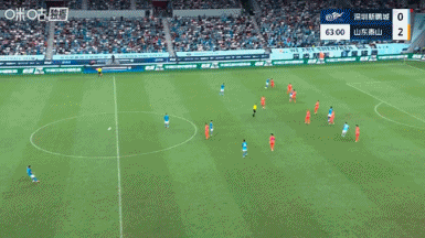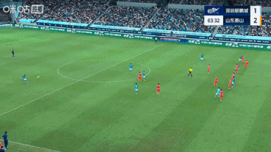 比賽第64分鐘,韋斯利助攻列昂索破門(mén),場(chǎng)上比分深圳新鵬城1-2山東泰山。