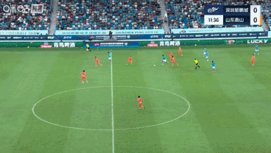 半場(chǎng)結(jié)束,深圳新鵬城0-2山東泰山。