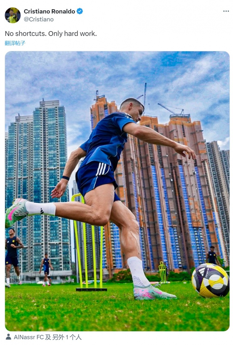 C羅社媒曬出在中國香港訓(xùn)練的照片,配文:“沒有捷徑,只有努力。”