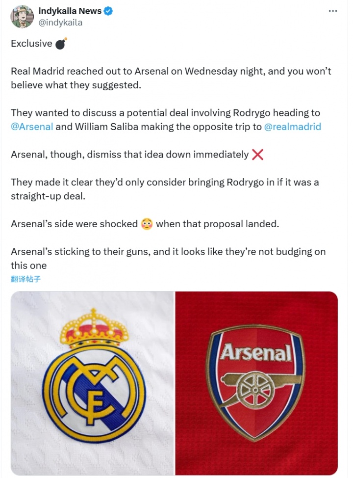阿森納立即拒絕了這一提議。他們明確表示,他們只會(huì)考慮直接交易以引進(jìn)羅德里戈。阿森納方面對(duì)皇馬的提議感到震驚。