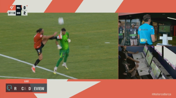 08月17日訊 新賽季西甲首輪,巴薩對陣馬洛卡。37分鐘,馬洛卡球員穆里奇踢到霍安-加西亞頭部,裁判第一時(shí)間出示黃牌,觀看VAR后改判直紅。