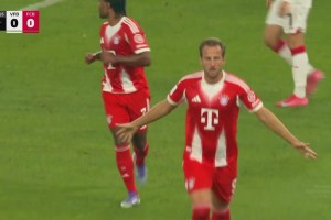 第18分鐘,拜仁首開記錄!賈克斯后場解圍失誤凱恩搶斷后中路弧頂抽射破門,斯圖加特0-1拜仁?!?/strong>