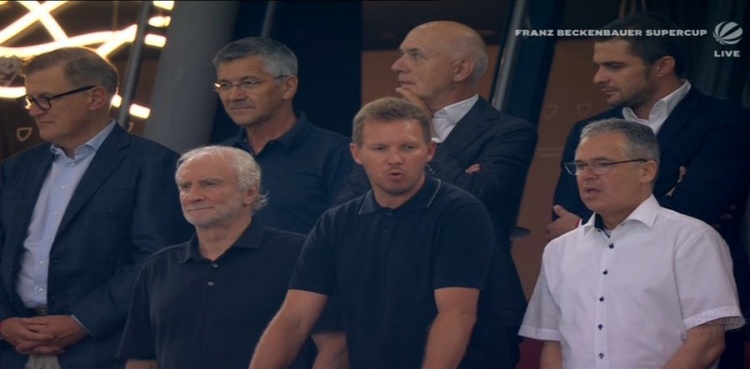 德國國家隊(duì)主帥納格爾斯曼來到了現(xiàn)場(chǎng),觀戰(zhàn)此役。
