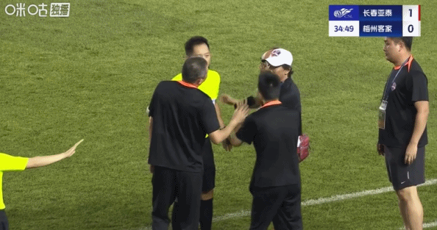 之后長春亞泰斷球發(fā)起進攻,卡米洛完成破門。VAR審核后,主裁判王迪維持進球有效。梅州教練組工作人員激動向主裁下跪,隨后被人拉起來。