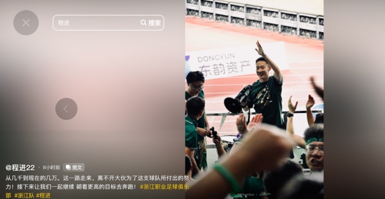 程進在個人社交媒體中寫道:從幾千到現在的幾萬。這一路走來,離不開大伙為了這支球隊所付出的努力!接下來,讓我們一起繼續(xù)朝著更高的目標去奔跑!