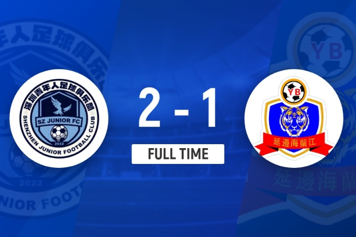 下半場補時10分鐘,深圳青年人2-1延邊龍鼎。
