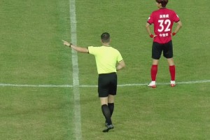 第53分鐘,淮安球員殺入禁區(qū)倒地,裁判沒有表示?!?/p>
