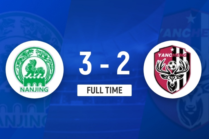 下半場(chǎng)補(bǔ)時(shí)6分鐘,南京3-2鹽城。