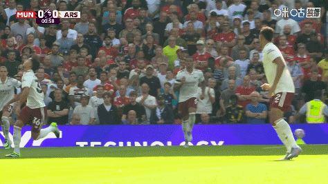 第13分鐘,阿森納角球機會,薩利巴倚住曼聯(lián)門將巴因德爾,后者擊球反而讓球飛向自家球門,后點卡拉菲奧里輕松破門。曼聯(lián)球員抗議阿森納犯規(guī),裁判判定進球有效↓