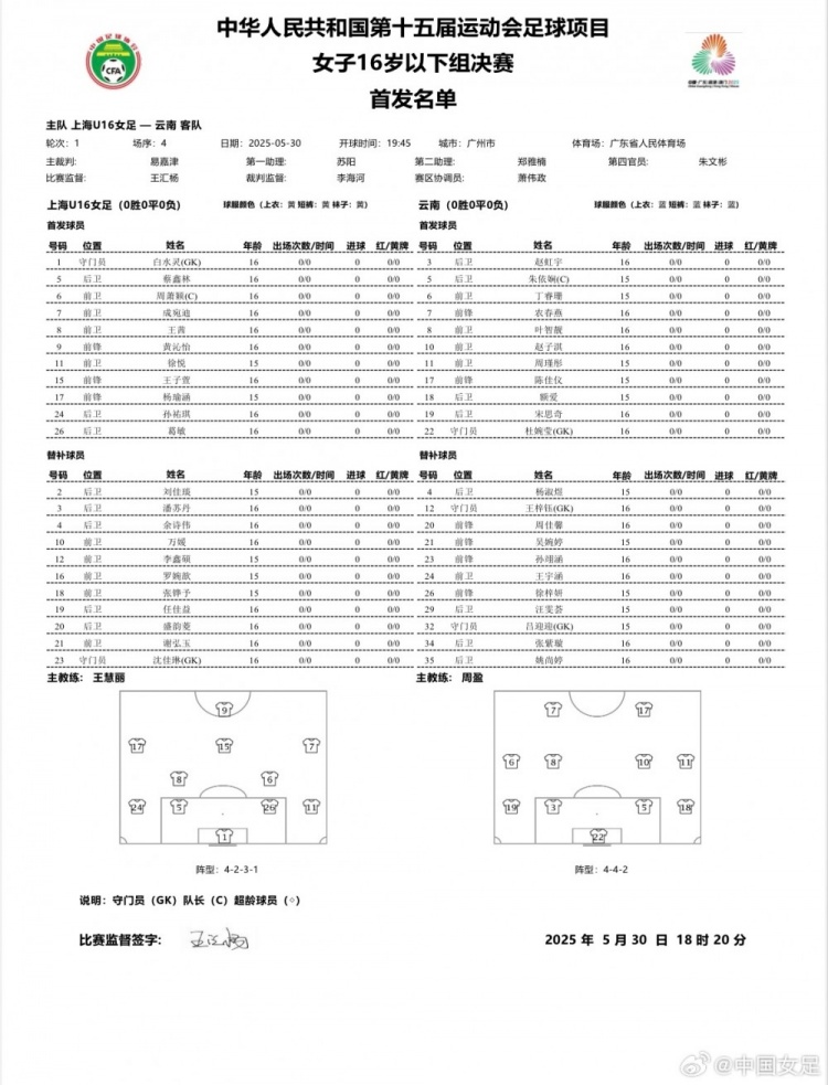 中華人民共和國(guó)第十五屆運(yùn)動(dòng)會(huì)足球項(xiàng)目 女子十六歲以下組 決賽