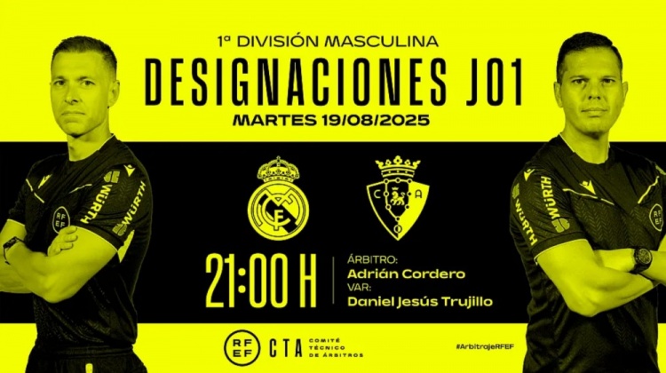 8月18日訊 北京時間8月20日凌晨3:00,2025-26賽季西甲聯(lián)賽第1輪,皇馬將坐鎮(zhèn)主場迎戰(zhàn)奧薩蘇納。賽前西班牙足協(xié)官方公布了本場比賽的裁判安排。