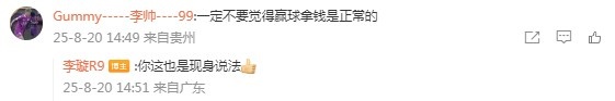 隨后,李帥本人留言評論道:“一定不要覺得贏球拿錢是正常的。”