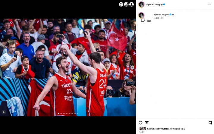 申京圖片配的是自己與隊友的照片,背景還疊加了近代土耳其國父穆斯塔法-凱末爾-阿塔圖爾克的畫像。