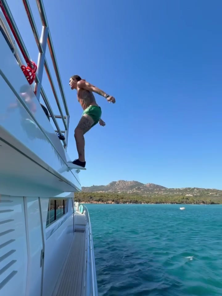水花略大 后空翻給幾分?戈登曬出游艇上跳水片段