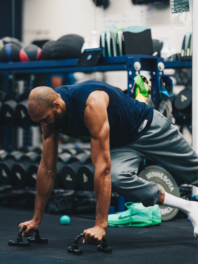 光頭造型引人注目!森林狼官方曬中鋒戈貝爾訓(xùn)練照