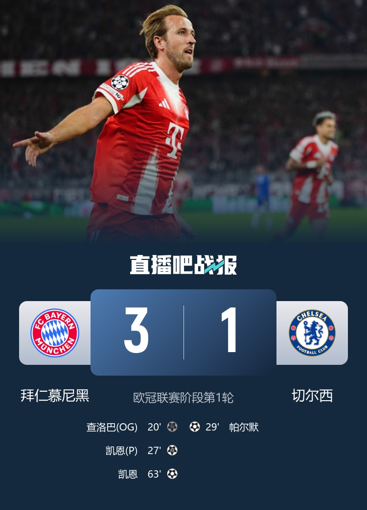 9月18日訊 歐冠聯(lián)賽階段第1輪,拜仁慕尼黑坐鎮(zhèn)主場(chǎng)慕尼黑安聯(lián)球場(chǎng)迎戰(zhàn)切爾西。上半場(chǎng),查洛巴自擺烏龍,凱恩造點(diǎn)+點(diǎn)射,帕爾默破門。易邊再戰(zhàn),古斯托失誤送禮,凱恩雙響,帕爾默進(jìn)球被吹。最終拜仁3-1切爾西。積分榜方面,拜仁收獲開門紅積3分,切爾西0分。