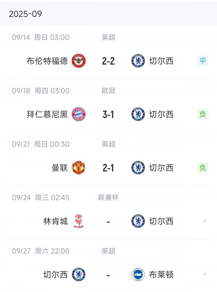 09月21日訊 英超第5輪,切爾西1-2不敵曼聯(lián),9月4連客暫時(shí)1勝難求2負(fù)1平。
