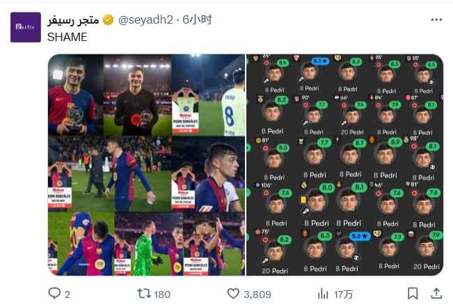 球迷曬出佩德里表現(xiàn)、媒體評分合集圖并寫道:恥辱