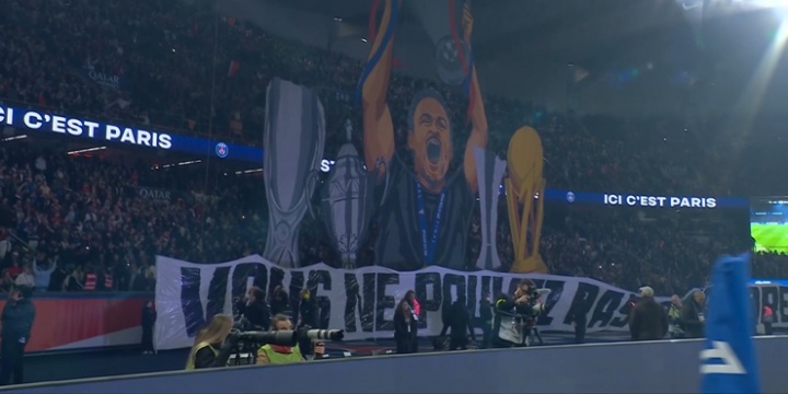 球迷展示巨型TIFO,慶祝登貝萊喜提金球獎(jiǎng)和恩里克獲頒克魯伊夫獎(jiǎng)