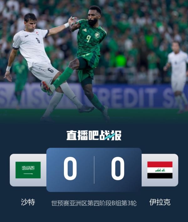 世預(yù)賽亞洲區(qū)第四階段B組第3輪,沙特0-0戰(zhàn)平伊拉克,晉級(jí)2026年世界杯正賽。